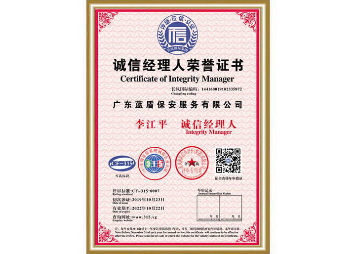 您當前所在位置:首頁 > 藍盾總覽 > 榮譽證書